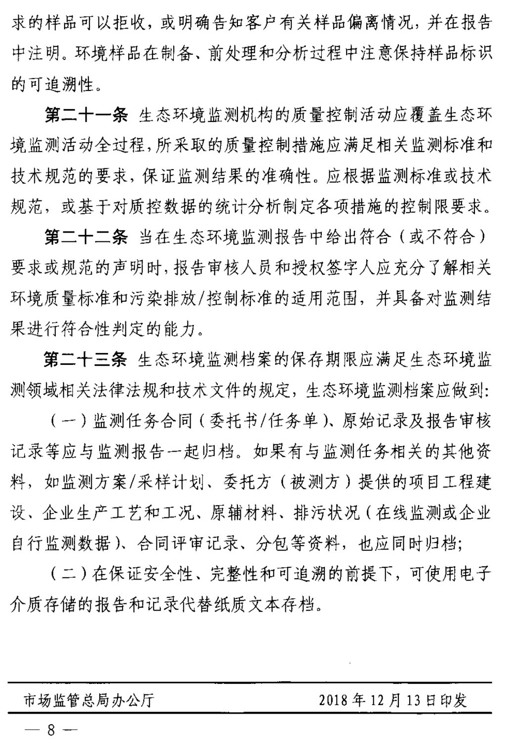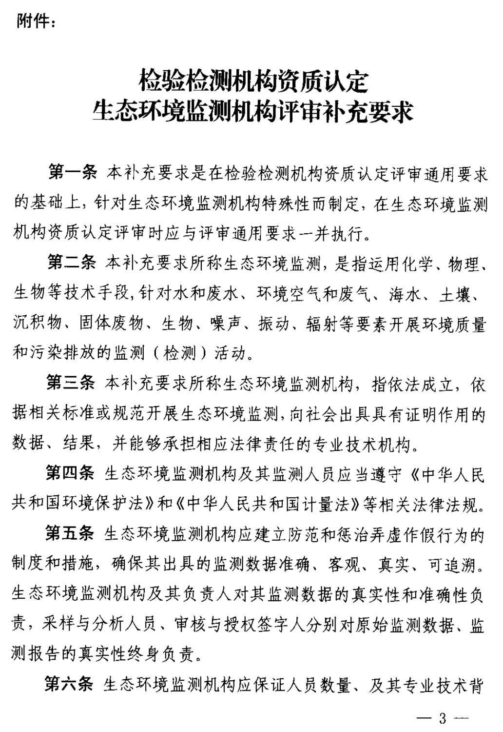 第三條 本補充要求所稱生態(tài)環(huán)境監(jiān)測機構(gòu),指依法成立,依據(jù)相關(guān)標準或規(guī)范開展生態(tài)環(huán)境監(jiān)測,向社會出具具有證明作用的數(shù)據(jù)、結(jié)果,并能夠承擔相應(yīng)法律責任的專業(yè)技術(shù)機構(gòu)。
